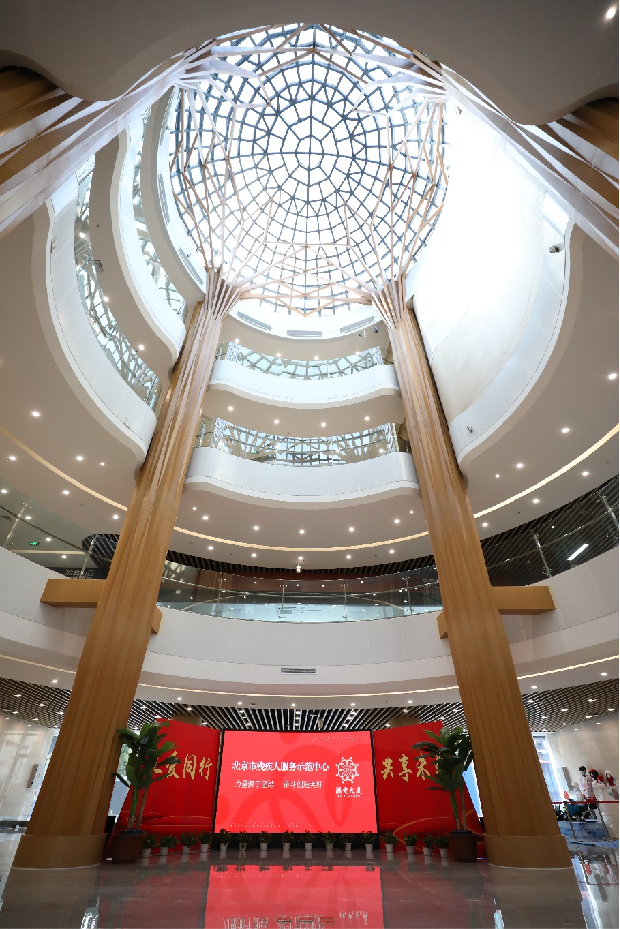 北京汇爱大厦总建筑面积为3.32万平方米,主要承担组织开展残疾人服务示范、孵化推广助残服务项目、为残疾人提供就业实训、开展残疾人事业发展成果展示交流等职能,是向国际社会展示中国人文形象、中国残疾人事业发展成就和首都残疾人服务保障水平的重要窗口,是展示国内高标准无障碍环境建设水平的示范样板,被冬奥组委列为北京2022年冬残奥会对外接待展示窗口单位。 汇爱大厦不仅有对外展示功能,更是“首善之区”北京市的重点民生工程,中心坚持公益性服务方向,为北京市户籍的全年龄段的各类残疾人提供服务,具有残疾人职业康复、寄宿托养、日间照料、康复训练、职业培训、就业实训、艺术康复、服务孵化、活动交流和宣传展示十项服务功能,是全市残疾人专业化、综合性服务示范阵地。