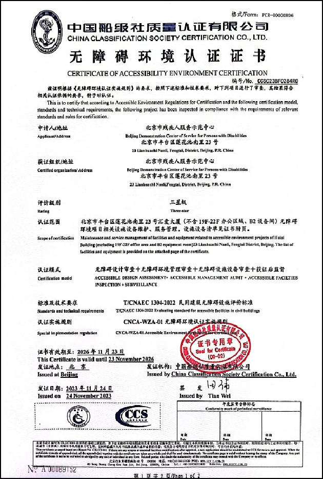 汇爱大厦(北京市残疾人服务示范中心)环境认证