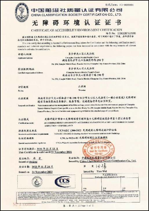 长沙市天心区人民法院环境认证