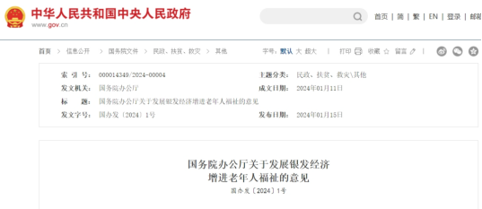 2024年1月11日,国务院办公厅发布首个《关于发展银发经济增进老年人福祉的意见》,意见指出: