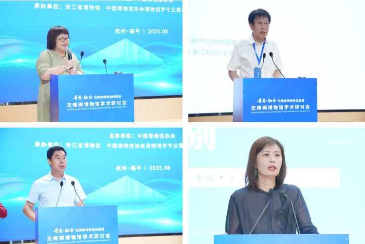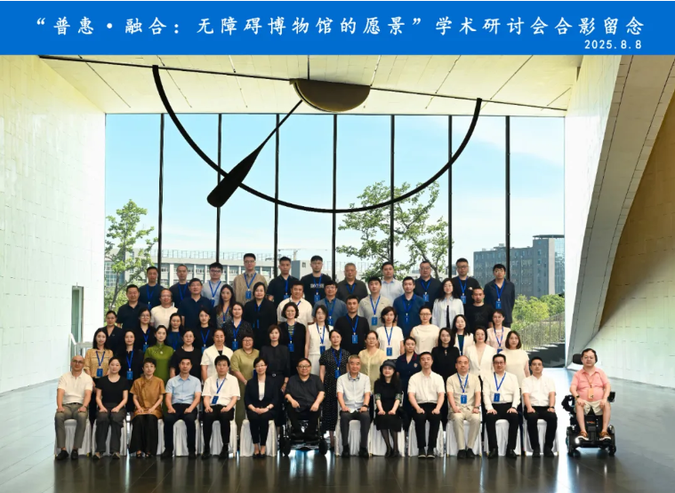 8月8日,由中国博物馆协会主办,浙江省博物馆、中国博物馆协会博物馆学专业委员会、玉架山考古博物馆承办的“普惠·融合 无障碍博物馆的愿景——无障碍博物馆学术研讨会”在玉架山考古博物馆召开。全国⼈⼤常委会委员、中国助残志愿者协会会⻓、国家⽆障碍环境展示馆总策展⼈吕世明,中国博物馆协会理事长刘曙光,浙江省文化广电和旅游厅党组成员、浙江省文物局局长朱海闵,杭州市临平区委常委、宣传部⻓沈威,区委常委、副区长王艳勤,中国轻工企业投资发展协会副理事长、无障碍产品中心副主任李木森,中国房地产业协会材料设施分会副秘书长、无障碍产品中心副主任李柏霖及主承办单位代表,省内外博物馆领导、专家学者等近100人出席活动。开幕式由浙江省博物馆馆长纪云飞主持。